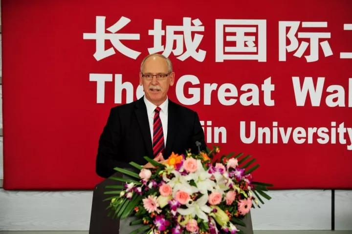 典禮開(kāi)始由西三一大學(xué)MBA主任Murray MacTavish教授致歡迎辭,分別介紹嘉賓,之后西三一大學(xué)商學(xué)院院長(zhǎng)Kevin Sawatsky教授致辭,他表示該項(xiàng)目的定位在于探索高級(jí)國(guó)際化職業(yè)經(jīng)理人的培養(yǎng)之路,打造具有公司理財(cái)專(zhuān)長(zhǎng)的國(guó)際化經(jīng)營(yíng)管理人才是該項(xiàng)目的專(zhuān)業(yè)特色,并高度評(píng)價(jià)了兩校的開(kāi)拓進(jìn)取和精誠(chéng)合作精神,表達(dá)了把長(zhǎng)城國(guó)際MBA項(xiàng)目做大做強(qiáng)的意愿,并對(duì)蒞臨典禮的中外嘉賓表示歡迎和衷心的感謝。隨后典禮中天津財(cái)經(jīng)大學(xué)副校長(zhǎng)張俊喜教授和西三一大學(xué)副校長(zhǎng)Phil Laird教授也分別致辭,對(duì)長(zhǎng)城國(guó)際MBA項(xiàng)目的建設(shè)與發(fā)展提出建議和希望。