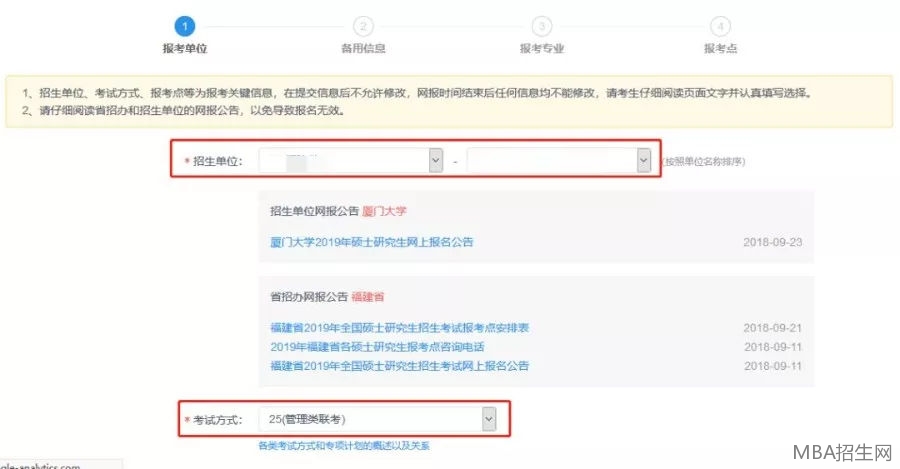其中:“報考單位名稱”:所報學(xué)校;“報考院系所”選擇報考院系;“報考專業(yè)”選擇工商管理;"學(xué)習(xí)方式“選擇非全日制;”考試科目“選擇管理類聯(lián)考綜合能力英語二"